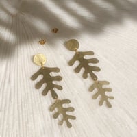 Les boucles d'oreilles sont délicatement dessinées, découpées, et façonnées à la main par Marie-Ange dans ses ateliers du sud de la France en Corse et à Nice en utilisant des matériaux durables tel que le laiton, la nacre et les perles d'eau douce, le cuir ou les perles semi-précieuses.